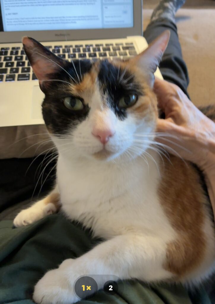 She deserves a major shout out. How can you be sad with a purring cat on your lap???