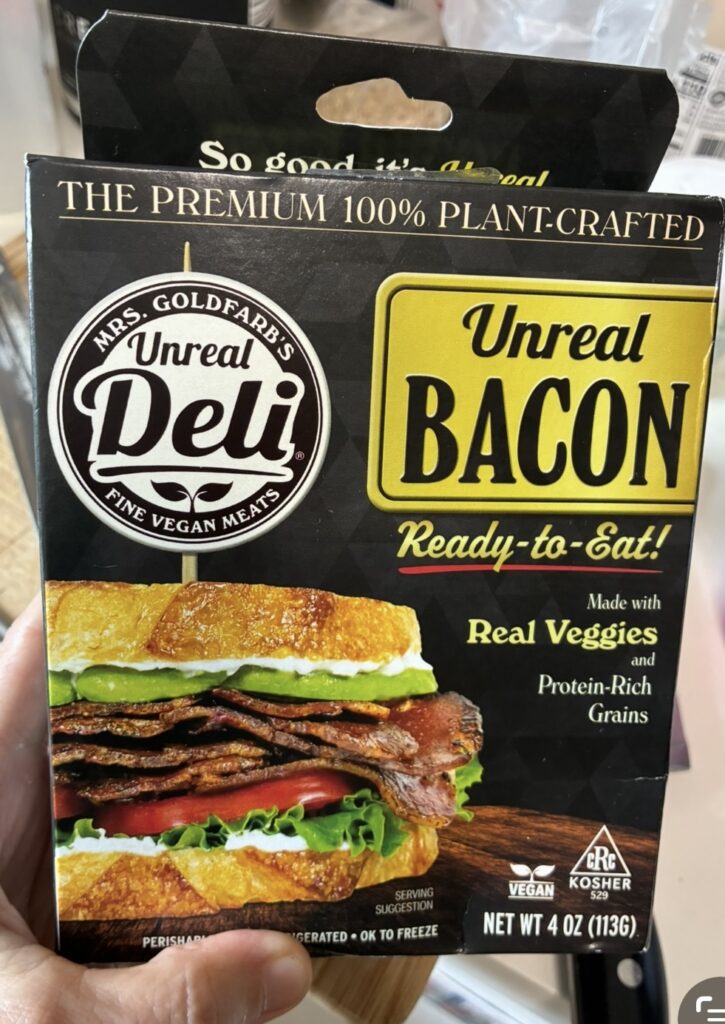 5. I don’t think I’d put vegan Parmesan on a charcuterie board but I do like that Treeline brand cheese! The bacon also looks good but yeah, a little weird for a charcuterie board. I’m also a huge fan of olives and nuts!