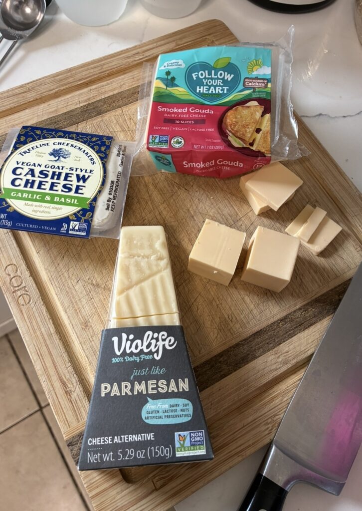 Now… the day before, my husband went grocery shopping and I told him to get some vegan cheese for the board. This is what he got: