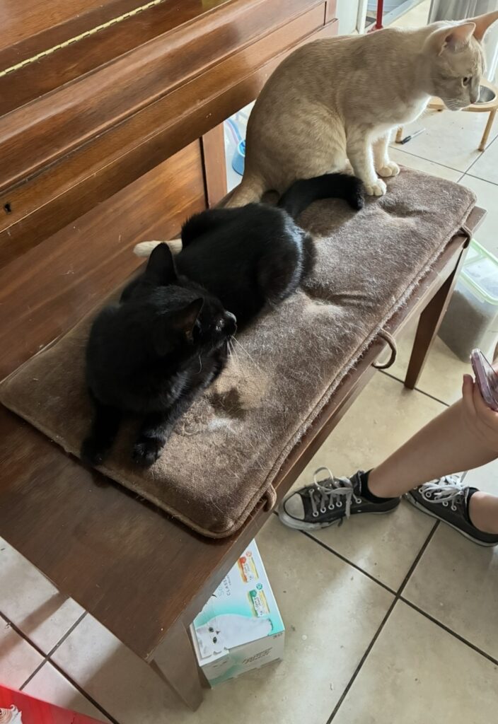 In other news, Charlotte, our black cat, is now ill. YES. It was just weeks ago that we had a scare with Muffin. Luckily Muffin is fine, but it’s come to our attention that Charlotte has lost a LOT of weight. Too much. She needs to see a vet. The problem is, we recently decided to get pet insurance (my husband can get it through his work). It doesn’t kick in for another week, and we’re trying to wait until then to take Charlotte in.