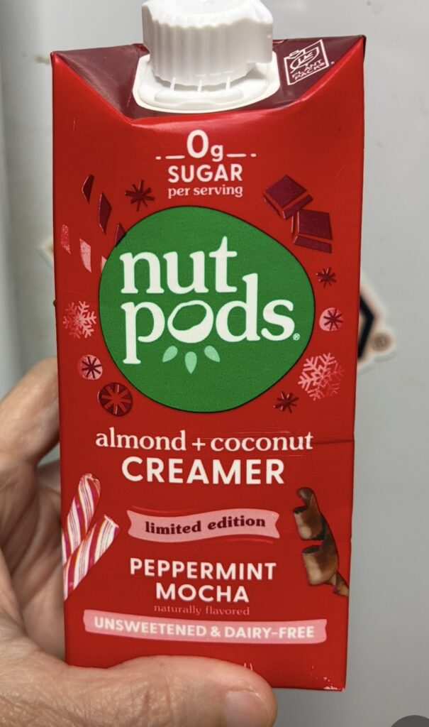 Also: I haven’t gotten my fancy holiday creamer yet but I did spy – and snag – a 5 ingredient almond based “holiday nog” that I am SUPER excited to try! 😀