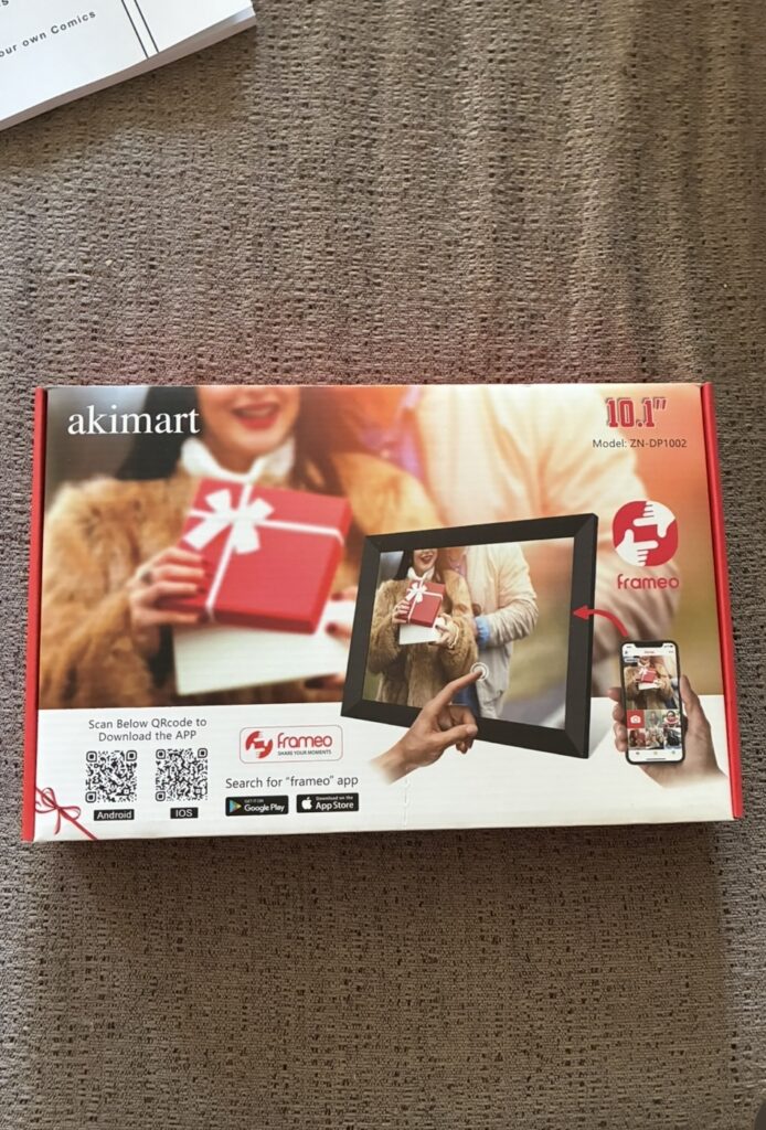 Now- I did get this on Amazon. Whenever possible, I’m avoiding Amazon but I couldn’t pass up the chance to save the money. This is a digital photo frame that can be loaded with hundreds of photos- I can send him photos and so can his girlfriend, and they’ll show up in his frame. I think he’ll like it!
