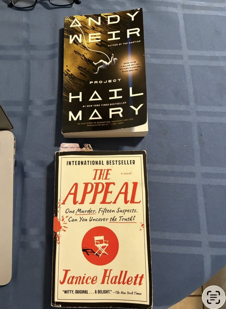 At first I wasn’t sure how I felt about Project Hail Mary, but I ended up loving it. I’m only about halfway through The Appeal, and I’m really enjoying that one as well. More on both of these coming up in a “reading” post.