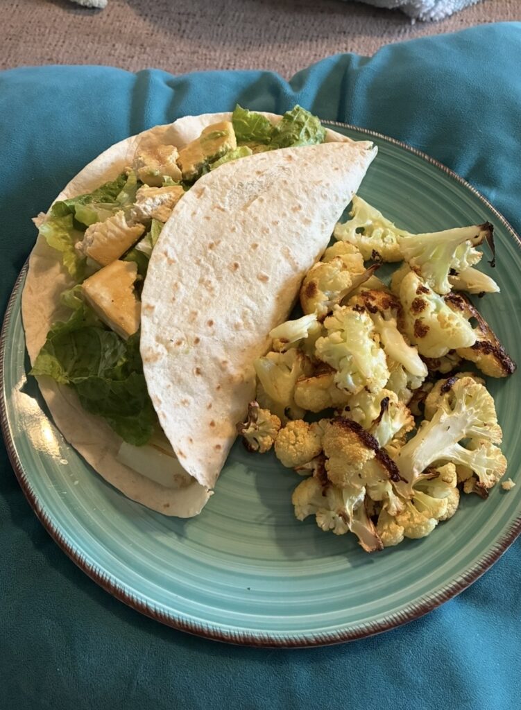 Instead, everyone understands they are on their own. Every once in a while when I’m in the mood- maybe once a week- I’ll make something for everyone, or, that is, my husband and me, and my daughter if she decides it’s “edible.” On other nights, I’m happy to throw some tofu in the air fryer for my daughter, my husband cooks his own frozen veggie burger, and I’ll usually roast a pan of vegetables.